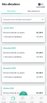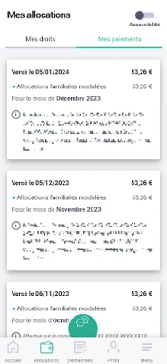 Accédez rapidement à vos 10 derniers paiements (dates et montants) en parcourant votre historique jusqu'aux 24 derniers mois. Vous pouvez également télécharger sur votre mobile vos relevés ou attestations au format PDF.