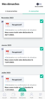 * Répondez aux questions de la Caf dans la rubrique Mes démarches et transmettez les documents nécessaires directement depuis votre smartphone