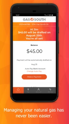 Conveniently access your Gas South account with face unlock and fingerprint recognition technology.