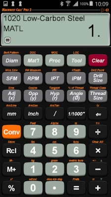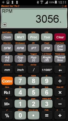 • NEW - Machining-specific keys to enter or calculate Surface Feet per Minute (SFM), Inches per Tooth (IPT), Inches per Minute (IPM), Inches per Revolution (IPR), # of Teeth, Depth of Cut (DOC), Width of Cut (WOC) and Length of Cut (LOC)