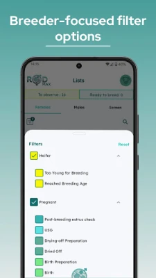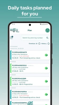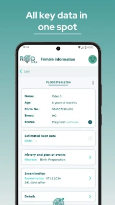Your time is valuable, so we automate what we can. ROD automatically creates a care plan for every female you mark as inseminated – so you never miss an important stage of reproduction. Focus on what matters – the app handles the rest.