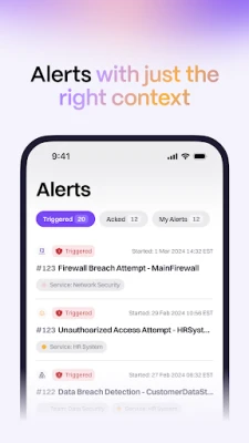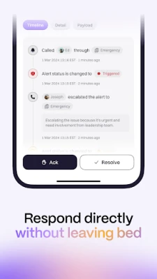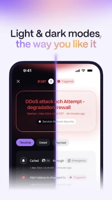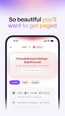 - Receive real-time alert notifications that bypass Do Not Disturb so an alert is never missed - View all your alerts in one place with the right context - Quickly acknowledge an alert or escalate an incident - View alert information such as timelines, details, and payload to help identify, understand and resolve the issue - Manage your push notifications in the app - Choose between light or dark mode